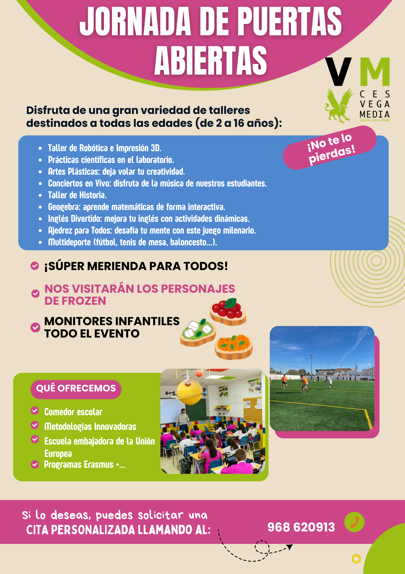 No pierdas la oportunidad de vivir una tarde divertida y educativa en el CES Vega Media. ¡Te esperamos!